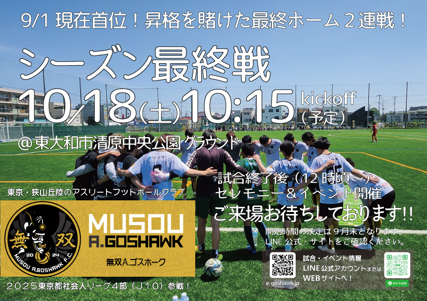 08:15~ 東京都社会人リーグ4部・第13ラウンド公式戦(第1試合)