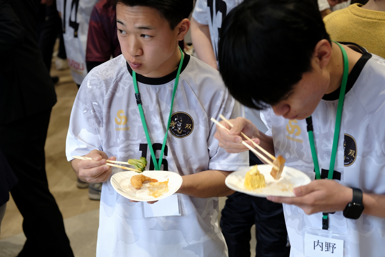 そして交流です。予定より多くの方に集まって頂いたので会場が狭く感じました。選手も慣れない様子ながらスポンサーの方や地域の方とコミュニケーションを取りました。