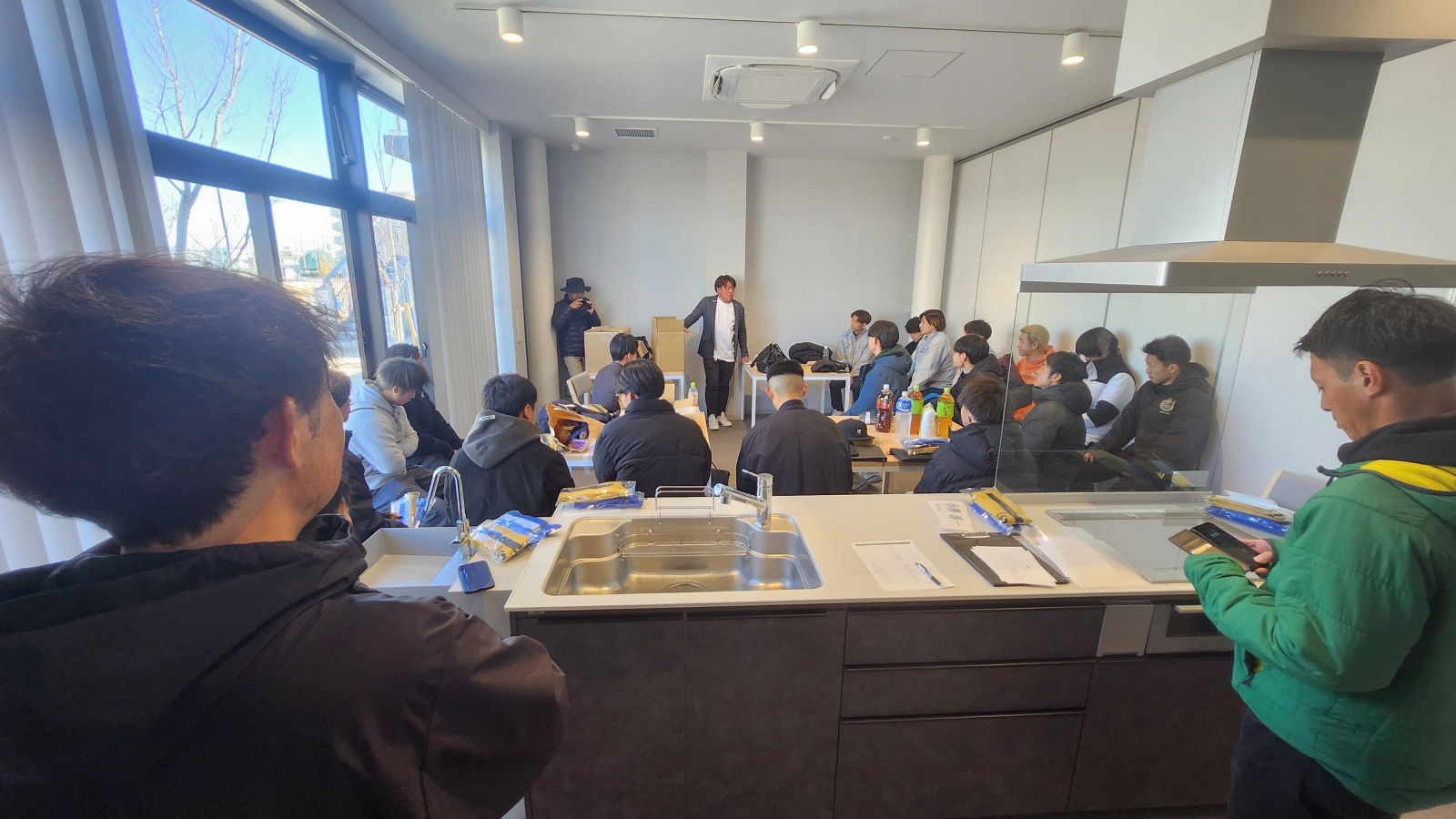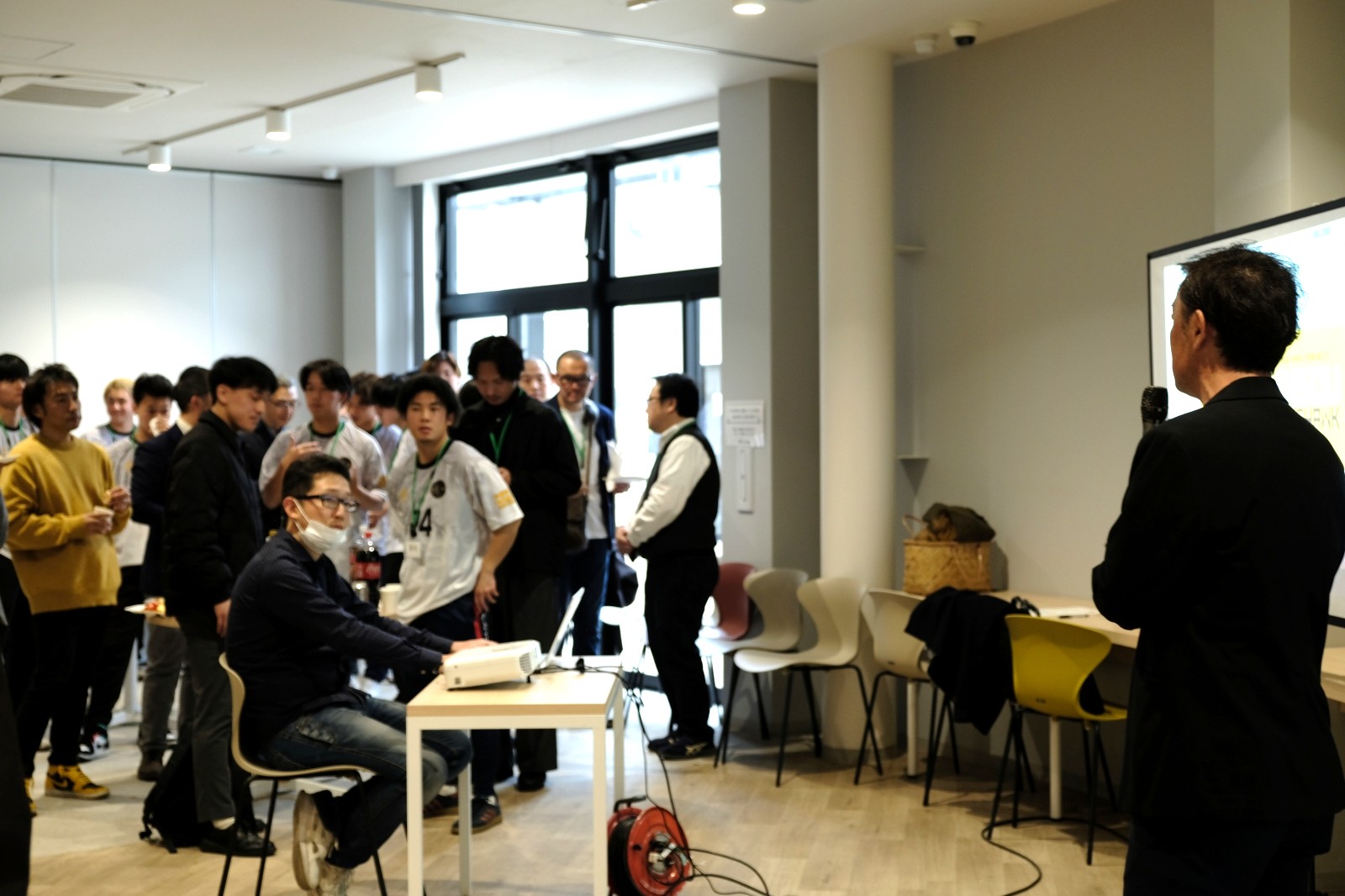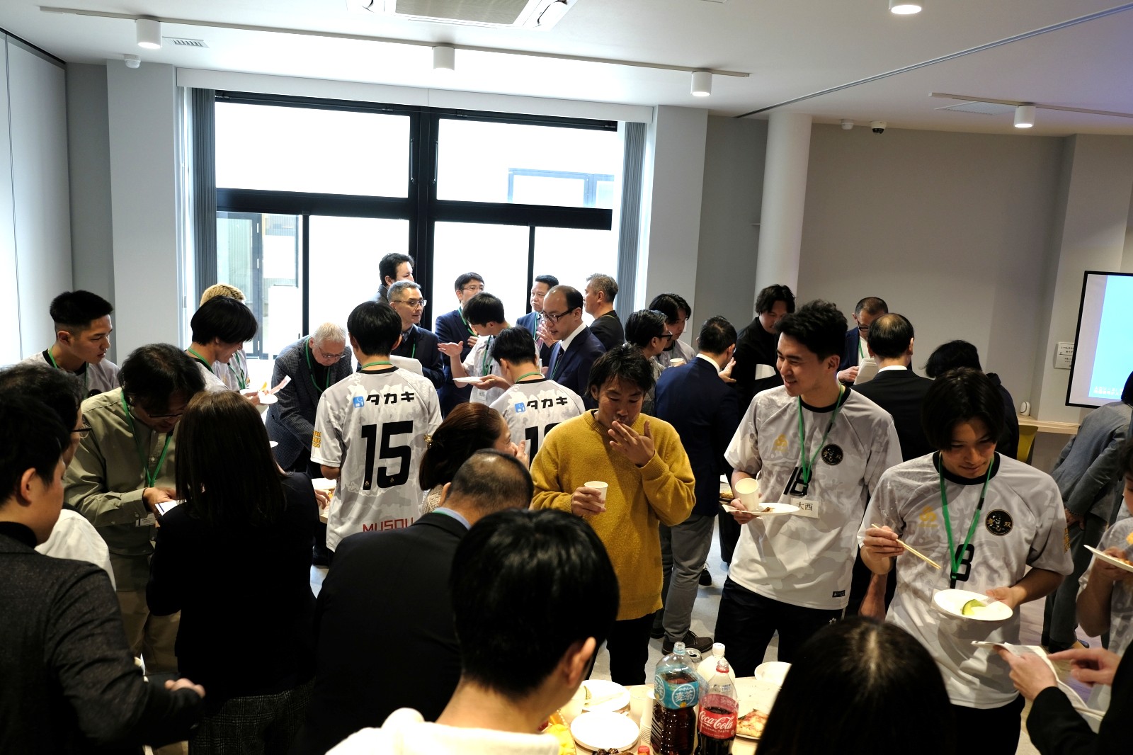 キックオフパーティの会場は東大和リビングテラス内「みんなの部屋」。前半でご挨拶・選手披露・ご来賓/パートナーご紹介、乾杯してからの後半で懇親となりました。
