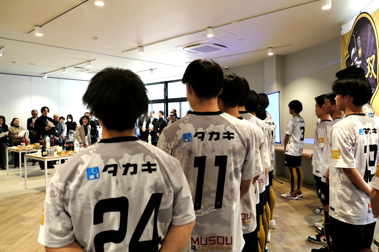 ご来賓・パートナー企業の方など50名以上をお迎えし、スタッフ・選手も合わせ盛大に無双A.ゴスホークの設立をお祝いし、2025年シーズンの必勝を誓いました!