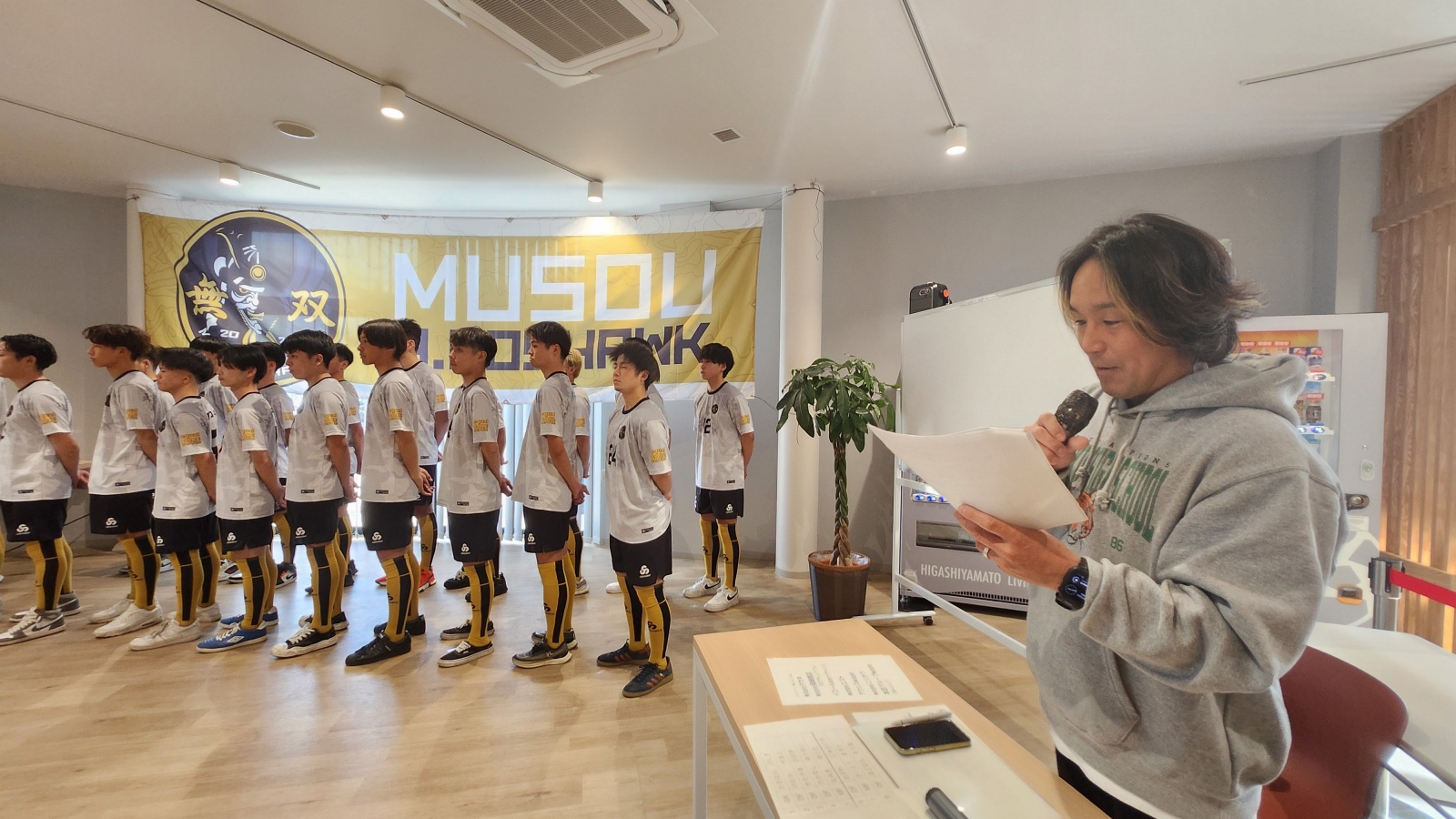 選手を1人づつご紹介し、最後に監督の斎藤健太より決意表明。みんな緊張しています。